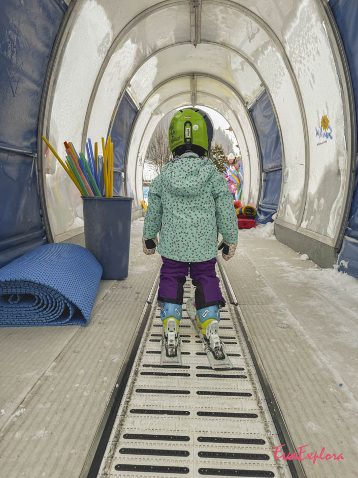 Die Nachmittage haben wir auf dem Übungshang in Hinterglemm verbracht und der Große hat innerhalb kürzester Zeit Ski fahren gelernt. Wir haben dem Großen für einen Nachmittag einen privaten Skilehrer gebucht und die 1:1 Betreuung war einfach jeden Cent wert! Am Ende konnte er Kurven fahren und wollte gar nicht aufhören. Wir durften mit der kleinen Schwester netterweise parallel den Zauberteppich nutzen und sie hat uns ebenso überrascht. Wie die „Pizza“ funktioniert, hat sie zwar noch nicht raus, aber „Pommes“ ist genau ihr Ding.