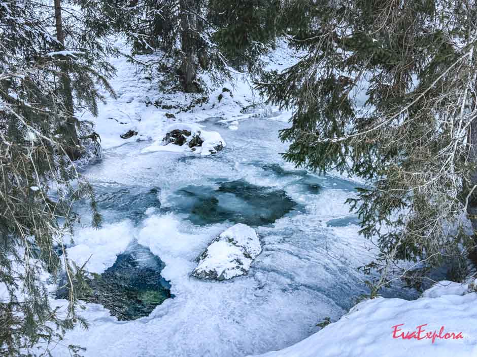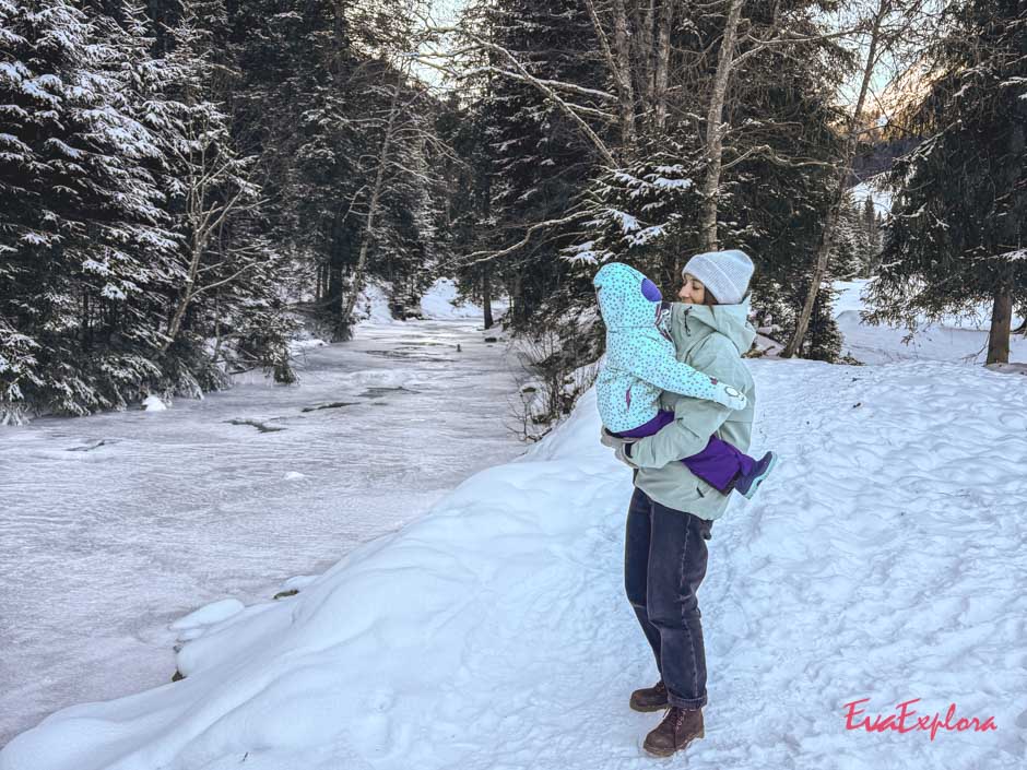 Kaum angekommen ging es für uns direkt in den Talschluss. Einer meiner liebsten Orte in Saalbach-Hinterglemm. Im Sommer gibt es dort einen der schönsten Wasserspielplätze Österreichs, Action pur (Kletterpark), eine Lokomotive und tolle Wanderungen. Im Winter ist es ein Traum in Weiß und Ruhe pur: Der Nebel wabert über den Bach, das Wasser versteckt sich teils komplett unter Eis. Die Wanderwege sind ein einziger Schnee-Traum.