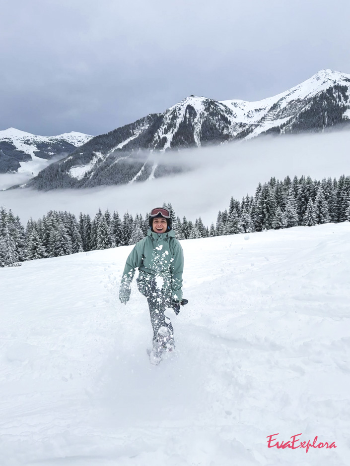 Ich bin seit langer Zeit mal wieder so richtig Snowboard gefahren – und war einfach nur glücklich! Direkt nach unserer Ankunft fing es an zu schneien und wir hatten Powder pur. Saalbach-Hitnerglemm war das absolute Winter-Wonderland und die Pisten ein Traum! Und Dank Kinderbetreuung im Hotel (in die die Kinder zum ersten Mal gegangen sind) konnten wir endlich mal wieder ein paar Abfahrten zusammen machen und haben es so genossen. Gibt es keine Kinderbetreuung, wechseln wir uns mit Fahren ab.